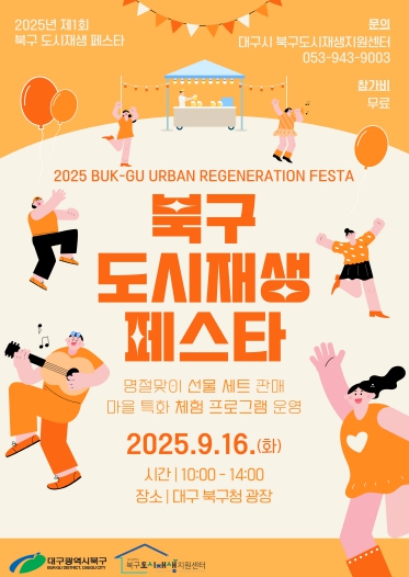 지역 주민과 마을협동조합이 함께한 『2025 북구 도시재생 페스타』가오는 9월 16일 오전 10시부터 오후 2시까지 북구청 앞마당에서 열린다.