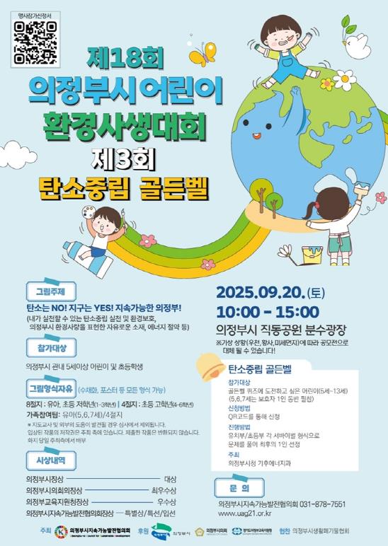 의정부시는 9월 20일 오후 1시 직동공원 분수광장(정보도서관 뒤편)에서 5~13세 어린이를 대상으로 ‘제3회 탄소중립 골든벨 퀴즈대회’를 개최한다.