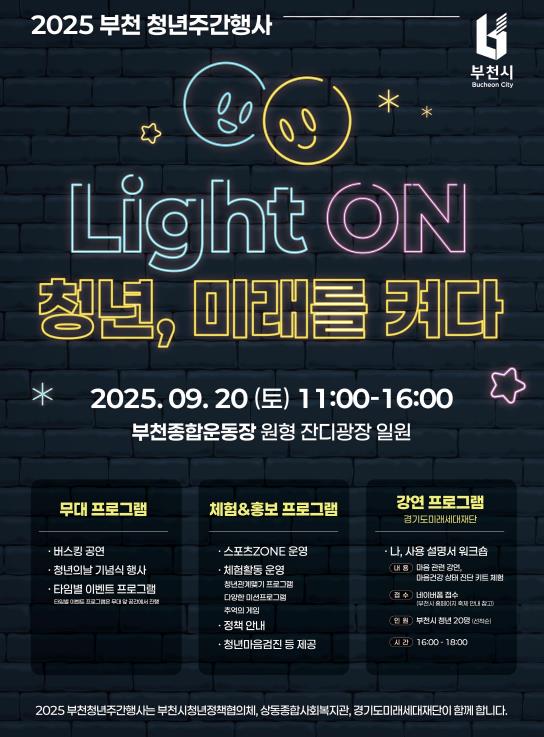 부천시는 청년의 날을 기념해 9월 20일 부천종합운동장 원형 잔디광장에서 ‘2025 부천 청년주간행사’를 연다.