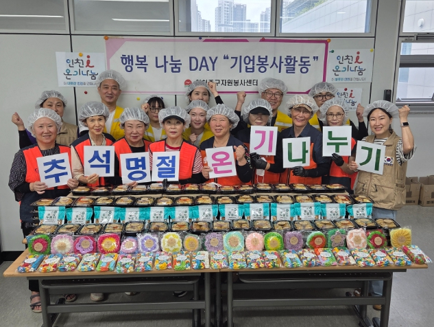 인천중구자원봉사센터는 민족 최대 명절인 추석을 맞아 지난 24일 인천공항에너지㈜(대표이사 이경용) 임직원과 함께 ‘온기 나눔 캠페인’과 연계한 ‘추석 명절 음식 나눔 행사’를 진행했다고 밝혔다.