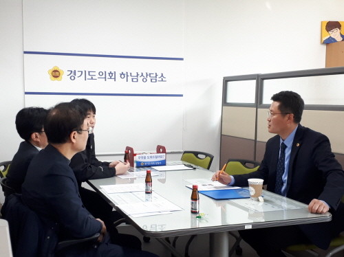 경기도의회 건설교통위원회 더불어민주당 김진일 도의원 (하남1)은 8일 경기도의회 하남상담소에서 경기도청 버스정책 관계자와 광역 환승센터 운행 현황을 보고 받고 문제점을 논의하는 자리를 가졌다.