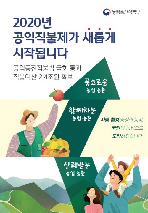 한편 공익직불금 신청 기간은 최초 4월 말~5월 예정이었으나 현재 코로나19확산으로 인해 변경될 예정이며 확정 되는대로 추후 공지할 예정이다.