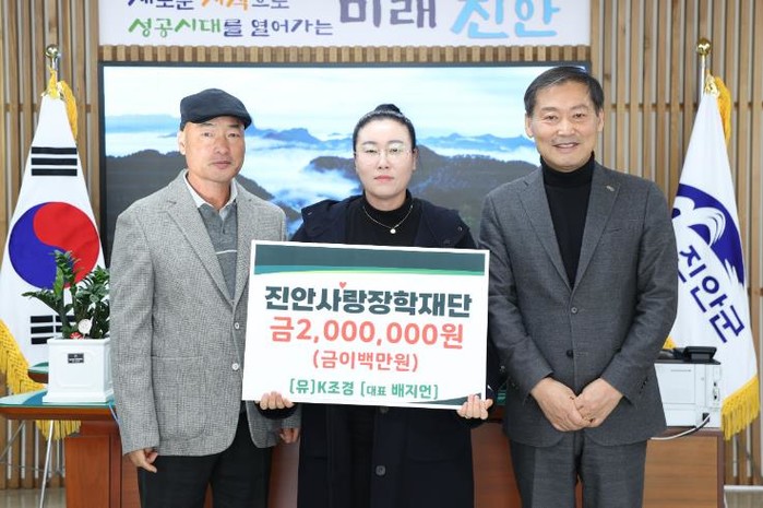 (유)K조경은 진안의 미래를 밝히는 데 힘을 보태고자 진안사랑장학재단에 장학금 200만원을 전달했다.