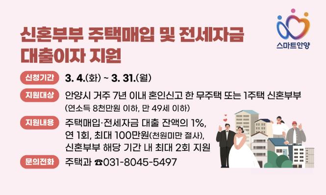 | ▲ 안양시, 신혼부부 주택매입 및 전세자금 대출이자 지원 |