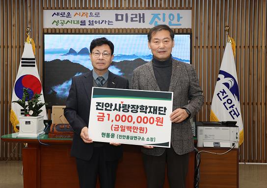 진안홍삼연구소 현동윤 소장은 지난 5일 진안사랑장학재단에 장학금 100만원을 기탁했다.