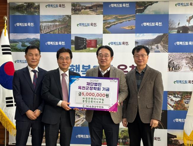 황규철 옥천군수는 “오늘 장학금을 기탁해 주신 경호엔지니어링종합건축사사무소의 조영규 사장님과 임직원 여러분께 깊은 감사의 마음을 전하며, 여러분의 따뜻한 지원이 지역 학생들이 더 나은 미래를 향해 나아갈 수 있는 발판이 될 것”이라고 전했다.