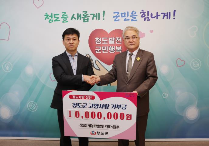 청도군은 지난 6일 매전면 소재 청도감 영농조합법인 이준수 대표가 청도군을 사랑하는 마음을 담아 고향사랑기부금 1,000만 원을 기탁했다고 밝혔다.