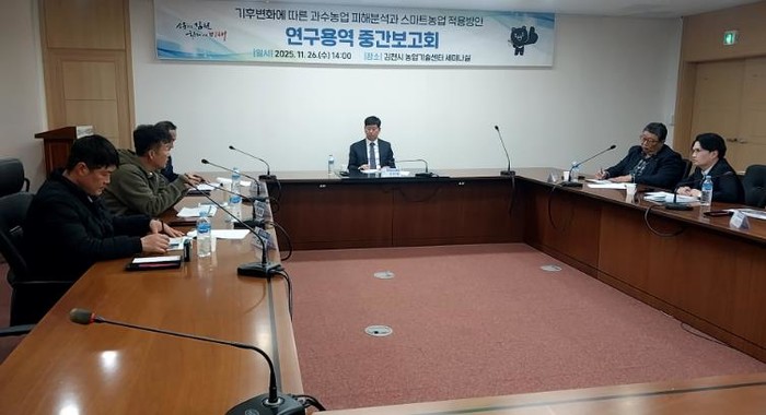 김천시는 지난 11월 26일, 기후변화에 따른 과수 농업 피해 분석과 스마트농업 적용 방안 연구용역 중간 보고회를 개최했다.