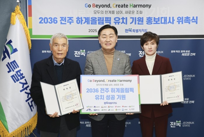 이날 위촉식에서 현정화 감독은 “저의 경험과 열정이 2063 전주 하계올림픽 유치에 작음 힘이라도 될 수 있다면 최선을 다하겠다”고 밝혔다. 이회택 회장 역시 “K-컬쳐 본향인 전북의 매력을 세계에 알리는 기회인 만큼 적극적으로 나서겠다”고 다짐했다.