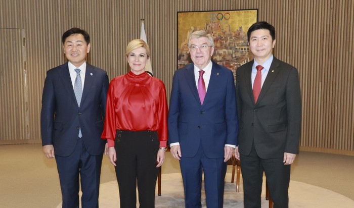| ▲ 김관영 전북특별도지사는 8일(현지시간) 스위스 로잔에 위치한 국제올림픽위원회(IOC) 본부를 방문해 토마스 바흐 IOC 위원장을 비롯하여 콜린다 그라바르키다로비치 IOC 미래유치위원장 등과 만나 전북 전주 하계올림픽 유치 비전을 피력하고 있다.-왼쪽부터 김관영 전북특별자치도지사, 콜린다 그라바르키다로비치 IOC 미래유치위원장, 토마스 바흐 IOC위원장, 유승민 대한체육회장 |