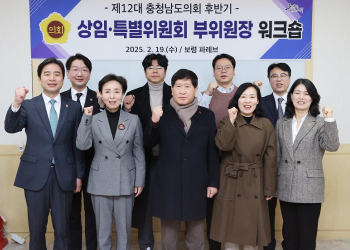충남도의회는 19일 보령시 파레브 호텔에서 제12대 후반기 충청남도의회 상임‧특별위원회 부위원장 워크숍을 열어, 남은 후반기 동안 더 나은 의정활동을 펼치기 위한 토론의 시간을 가졌다.