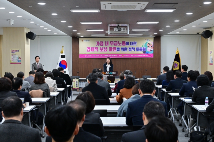 서울특별시의회는 세계 여성의 날을 앞두고 3월 7일 서울시의회 제2대회의실에서 ‘가정 내 무급노동에 대한 경제적 보상 마련을 위한 정책토론회’를 개최하여 관련 전문가와 시민들의 의견을 청취했다.