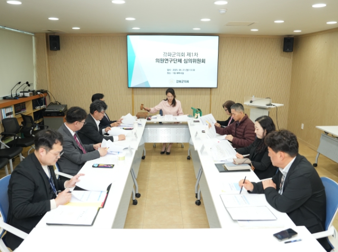 강화군의회는 지난 21일 의원연구단체 심의위원회(고복숙 위원장 및 의원 1명, 외부위원 3명)를 개최하고 2개 연구단체의 활동 계획을 심의했다고 밝혔다.