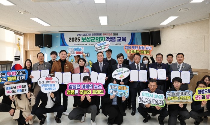 보성군의회는 2024년 공공기관 종합 청렴도 지방의회 첫 평가에서 1등급을 받는 성과를 올렸으며, 2월 달모임에 보성군과 합동으로 청렴실천 합동서약식을 하는 등 2025년에도 2년연속 1등급을 받기 위해 노력을 경주함으로써 보성군민의 많은 기대와 관심을 받고 있다.