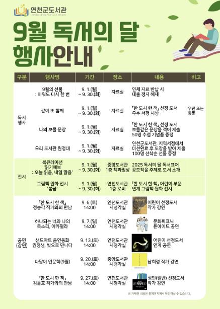 ▲ 연천군도서관, 9월 독서의 달 맞아 풍성한 독서문화 행사 개최 |
