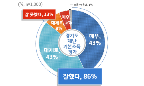 경기도민 대다수(86%)가 ‘경기도 재난기본소득’ 지급에 대해 긍정적으로 평가한다는 조사결과가 나왔다.