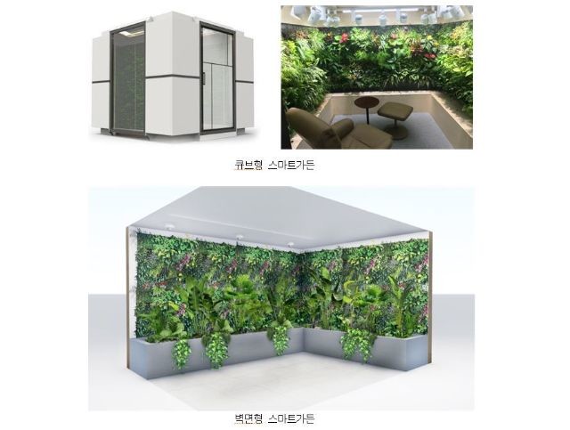 현재 스마트가든은 사업장 내 실내공간에 박스 형태로 조성되는 큐브형과 휴게실 벽면을 활용하는 벽면형 2가지 형태로 조성되고 있으며 1개소당 조성단가는 3천만원이다.