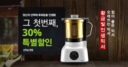 한일전기㈜가 황금빛 인생믹서 ‘한일 티타늄 대용량 믹서(SHMF-H3500TG)’를 30% 할인된 가격에 한정 판매하는 특별 할인전을 개최한다고 밝혔다.