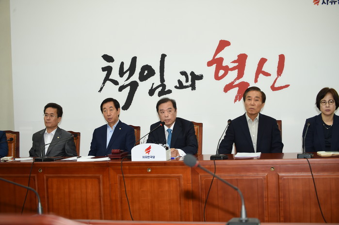 지난 16일 국회에서 열린 비상대책위원회의를 하고 있는 자유한국당 지도부의 모습. <사진=곽정일 기자> |