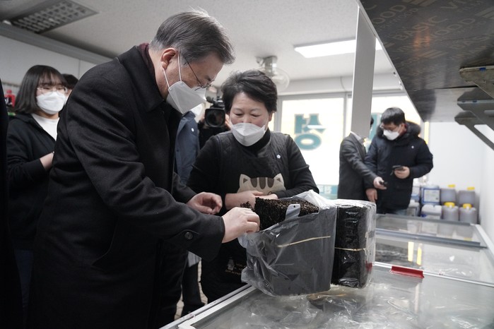 문 대통령은 “그러면 내가 사야지”라면서 곱창돌김을 보고 “맛있어 보인다”고 했다. “김을 아주 좋아한다”.