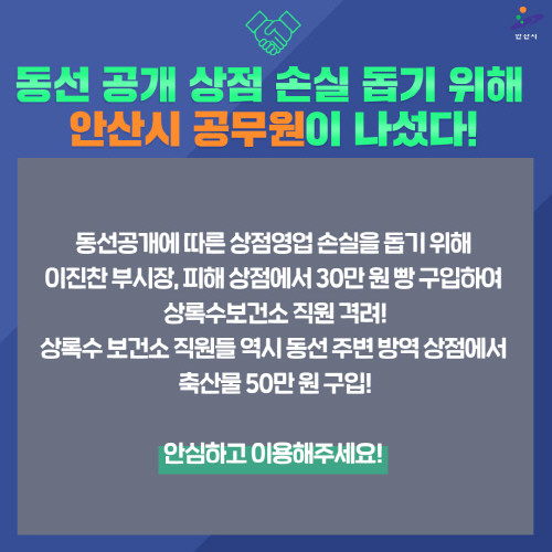 또 단원보건소 직원 30여명도 와동 소재 음식점을 방문해 영업에 도움을 줄 예정이다.