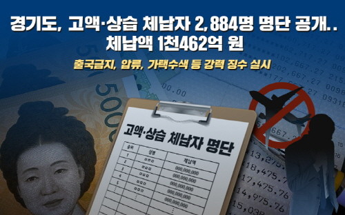 경기도가 1년이 지나도록 1,000만 원 이상의 세금을 내지 않은 고액·상습 체납자 2,884명의 명단을 20일 경기도 홈페이지와 경기도보, 위택스(지방세 납부 사이트)를 통해 공개했다.