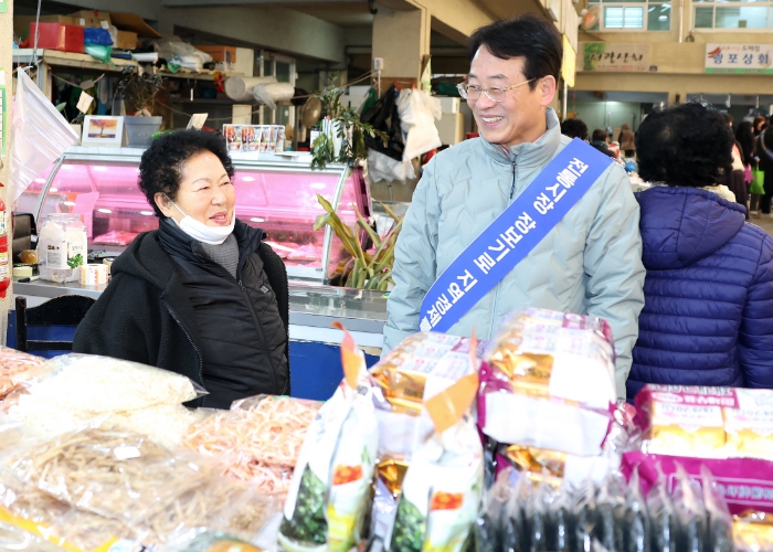강진원 군수 설 명절 앞두고 강진읍시장 방문 고충 나눠