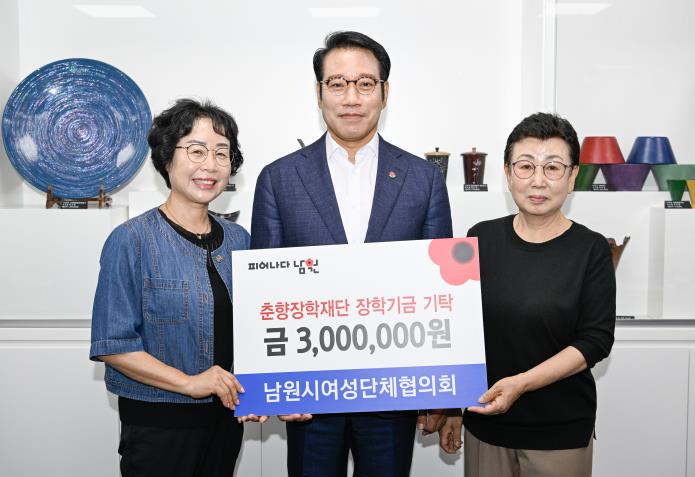 지난 24일 남원시 여성단체협의회는 (재)춘향장학재단에 장학금 300만원을 기탁하며 지역 인재 교육 지원에 뜻을 모았다.