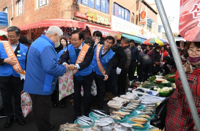 완주군이 민족 대명절 설을 맞아 전통시장 활성화와 지역 상권 회복, 민생경제 회복을 위해 장보기 행사를 진행하고 있다.