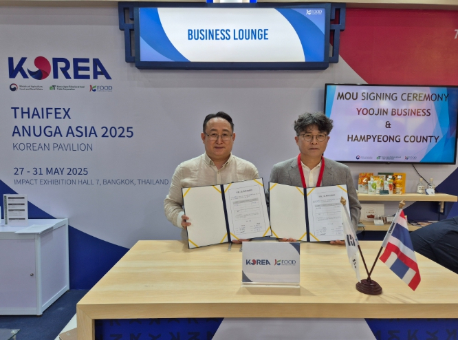 함평군은 태국 방콕에서 ‘THAIFEX–Anuga Asia 2025’ 국제 식품박람회에 참가해 지난 28일 유진비즈니스와 조미김 수출을 위한 업무협약을 체결했다고 29일 밝혔다.