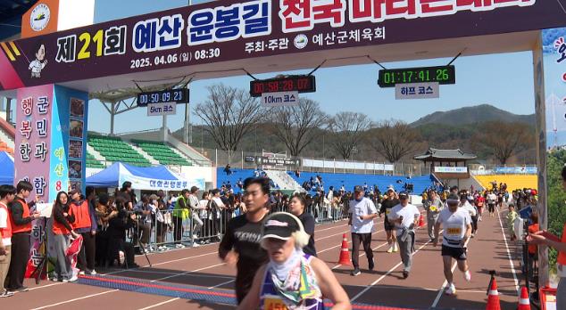 예산군은 예산군체육회에서 개최한 제21회 예산 윤봉길 전국 마라톤대회가 지난 6일 예산군 종합운동장과 벚꽃로 일원에서 성황리에 막을 내렸다고 밝혔다.
