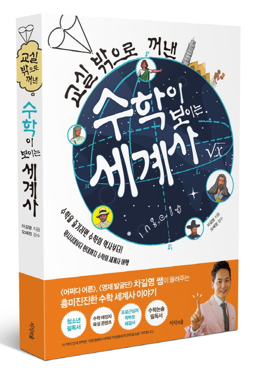 이번에 출간된 <교실 밖으로 꺼낸 수학이 보이는 세계사>는 ‘나의 수학 사춘기’,’어쩌다 어른’ 등에 출연한 수학 대표 강사로 활동하고 있는 수학의 마술사 차길영 작가가 수학을 왜 배워야 하는지를 인류사의 흥미로운 사건을 통해 알려주는 수학 교양서이다.