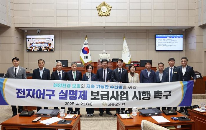 고흥군의회는 지난 22일, 제335회 임시회 마지막 날 본회의장에서 전자어구 실명제 보급사업의 조속한 시행을 촉구하는 건의문을 발표했다.