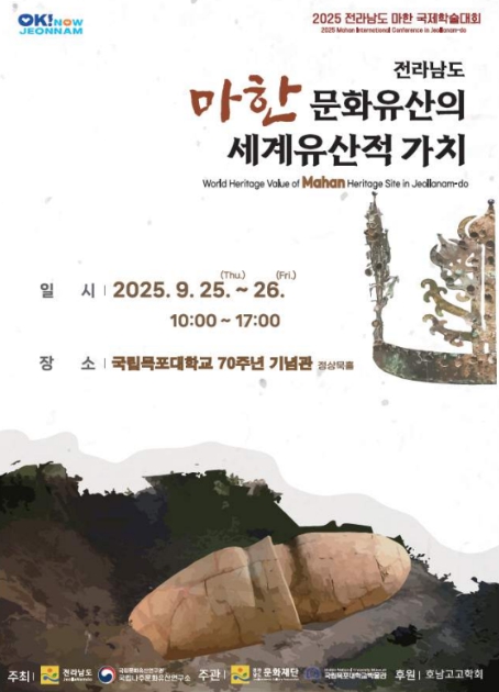 국가유산청 국립문화유산연구원 국립나주문화유산연구소는 전라남도와 함께 9월 25일부터 26일까지 국립목포대학교 70주년 기념관(전남 무안군)에서 '전라남도 마한 문화유산의 세계유산적 가치'를 주제로 국제학술대회를 개최한다.