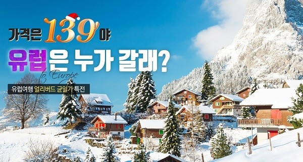 이번 ‘가격은 139야 유럽은 누가갈래?’는 2019년 11월부터 2020년 3월까지 겨울철 유럽여행을 비싼 가격이 아닌 일정한 가격인 139만원으로 제공하는 얼리버드 특가 이벤트이다. 총 10개 상품이 마련돼 있으며 항공권, 숙박이 모두 포함된 균일가로 다녀올 수 있다.