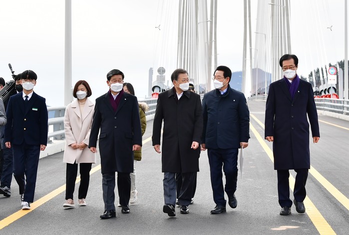 ▲ 문재인 대통령, 김영록 도지사, 박우량 신안군수(신안군 제공) |