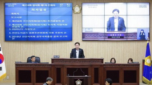 회의를 주재한 김동규 의장은 개회사에서 “시의회는 올 한해 시 재정이 공동체 발전과 미래 성장 동력을 만들어 가는 데에 합리적으로 쓰일 수 있도록 최선의 노력을 다할 것”이라며 “세계 경제 불확실성 가중과 신종 코로나바이러스 확산 등 큰 위기가 닥쳤지만 시민들의 협력 속에 지혜롭게 헤쳐 나가자”고 당부했다.