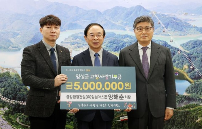 금강환경건설(유)임실아스콘 양해춘 회장이 지난 4일 지역사회 발전과 주민 복리 증진을 위해 임실군에 고향사랑기부금 500만 원을 기탁했다.