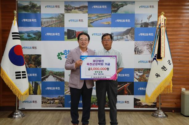 옥천군 이원면의 경민농원 염진세 대표가 3일 옥천군장학회에 장학금 300만 원을 기탁했다.