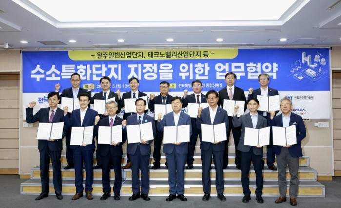 이날 협약식에는 전북특별자치도지사와 완주군수를 비롯해, (사)한국수소연합, 한국가스안전공사, 전북연구원, 전북테크노파크, 경제통상진흥원, 자동차융합기술원, 전북대학교, 국립군산대학교, 우석대학교, 수소에너지고등학교, 현대자동차 전주공장, 일진하이솔루스, 비나텍, 코스텍 등 총 16개의 기관 및 기업이 참여했다.