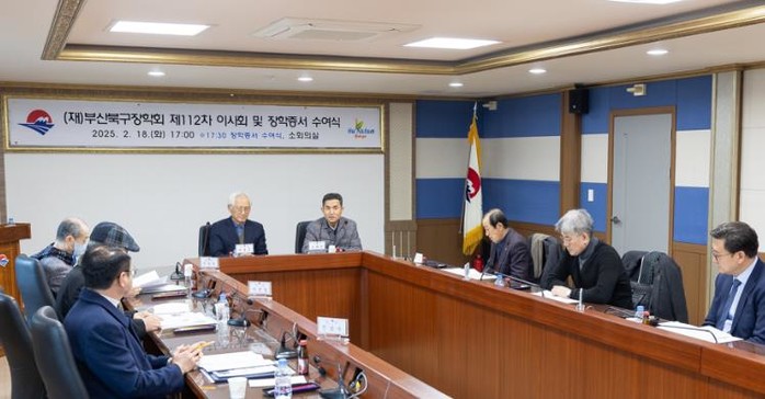 (재)부산북구장학회는 지난 18일 부산 북구청 소회의실에서 2025년도 우수대학 입학생 3명에게 장학금 각 2백만 원과 장학증서를 수여했다.