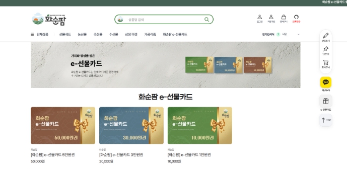 ▲ 화순팜 e-선물카드 카테고리 화면 |