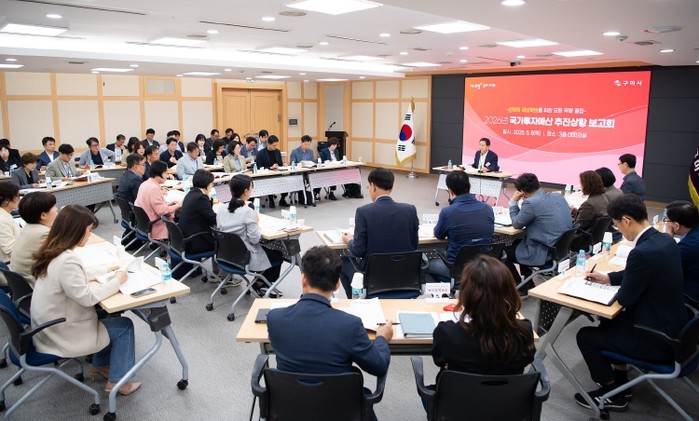 구미시는 5월 8일 시청 대회의실에서 ‘2026년 국가투자예산 추진상황 보고회’를 열고, 국비 확보를 위한 전방위 대응에 나섰다. 이번 보고회는 김장호 시장 주재로 열렸으며, 각 국비사업 담당 국장 및 과장 등 80여 명이 참석했다.