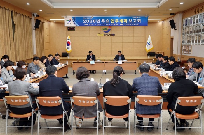 장흥군이 지난 7일부터 13일까지 군청 대회의실에서 ‘2026년 주요 업무계획 보고회’를 개최했다고 밝혔다.