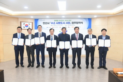 시는 17일 수소시범도시 사업의 성공적인 추진을 위해 안산도시개발㈜, 한전KPS㈜, ㈜포스코건설, ㈜KT, ㈜KT DS, ㈜SPG수소, 안산환경재단 등 7개 기관과 업무협약을 체결했다.