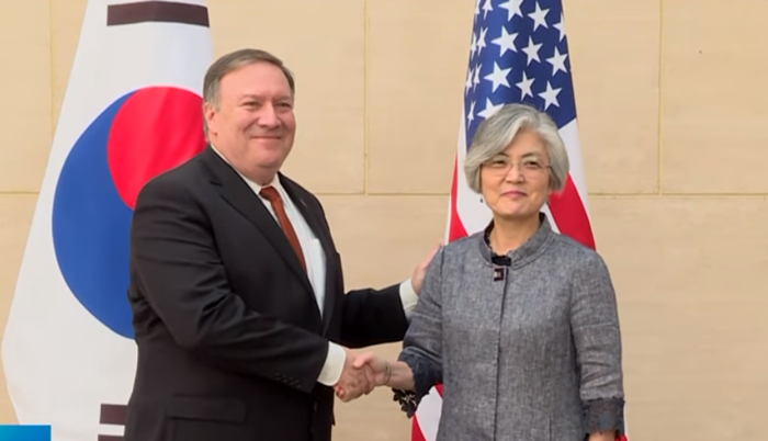 | ▲ 마이크 폼페이오 미 국무장관(왼쪽)과 강경화 외교장관. <사진=SBS뉴스 갈무리> |