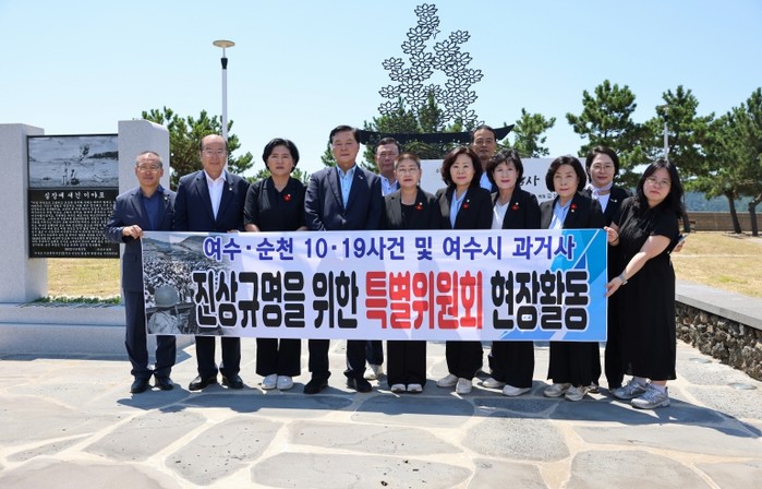여수시의회 여순사건 및 과거사 진상규명 특별위원회(위원장 이미경)는 지난 7월 31일부터 8월 1일까지 1박 2일간 여수시 남면 안도 일원에서 열린 '남면 이야포·두룩여 미군폭격사건 제75주년 민간인 희생자 추모제'에 참석하여, 희생자들의 넋을 기리고 과거사 진상규명의 중요성을 재확인 했다.