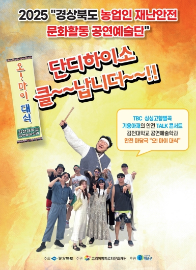 행사에서는 TBC ‘싱싱고향별곡’ 한기웅 진행자의 안전 토크와 노래교실, 김천대학교 공연예술학과의 마당극 ‘오! 마이 대식!’, 품바 오봉산 공연, 전문 강사의 안전교육 등이 함께 진행돼 교육 효과를 더욱 높일 예정이다.