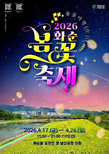 전라남도 화순군은 봄을 맞아 지역 대표 축제인 ‘2026 화순 봄꽃 축제’를 오는 4월 17일부터 26일까지 10일간 화순 꽃강길과 남산공원 일원에서 개최한다고 밝혔다.