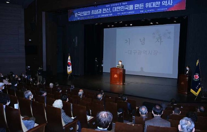 이번 순국선열의 날 기념식은 주권 수호를 위한 국채보상운동과 대한광복회 창립 등 나라가 어려울 때마다 분연히 일어나 앞장서 희생하고 헌신하신 순국선열들의 위대한 정신을 이어받아, 대구가 감염병과의 전쟁을 치루고, 시민들의 헌신과 노력에 힘입어 코로나19 방역의 모범도시로 나아가는 중요한 시점에서 개최되는 행사이기에 더욱 의미가 크다.